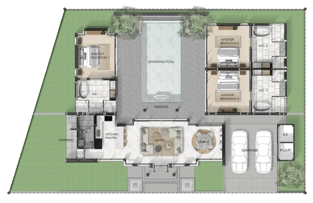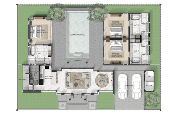 3 bedroom 4 bathroom with private swimming pool. Surrounded by the nature and closed to big buddha.